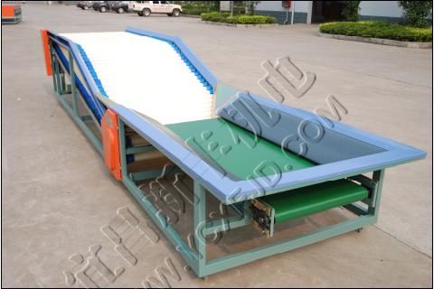 提升和預選平臺:提升斜工作面是使水果在進入預選平臺前均勻平鋪,人工預選平臺的輸送管在運行的過程中帶動水果不斷旋轉,增加可視性。
