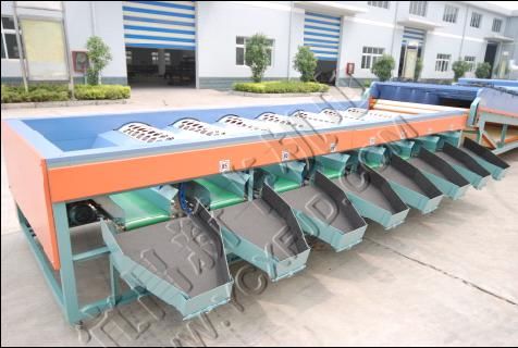 滾筒分選機是一種常用的機械式分選機,它的價格相對便宜,它的標準規格是7個級別,每個級的過濾直徑按客戶要求訂做,桔子一般為φ55—φ85,橙子一般為φ70—φ95,若桔子橙子兩種都要進行分選,則需要增加級別或用戶自己更換滾筒。