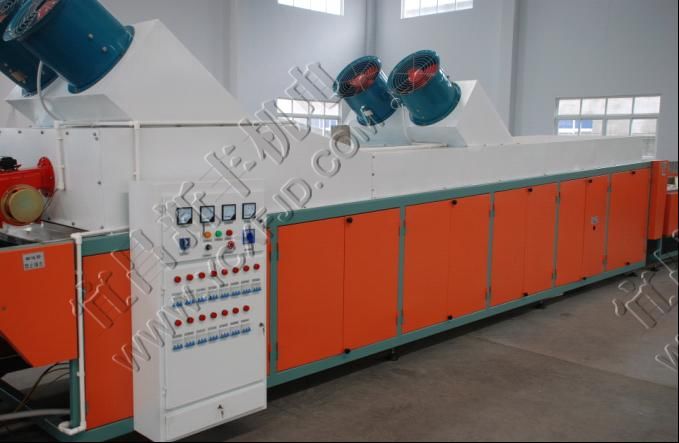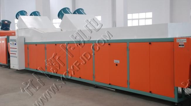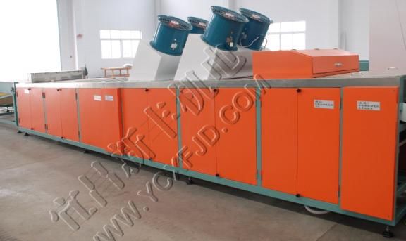 熱風(fēng)機(jī)換能器單獨(dú)布置,提高熱效率,經(jīng)干燥后的熱風(fēng)經(jīng)過風(fēng)機(jī)加速直接送進(jìn)干燥道,通道內(nèi)空氣濕度低于25%,溫度不均勻度不超過±2℃。柴油燃燒機(jī)采用意大利產(chǎn)品,提高了干燥系統(tǒng)運(yùn)行的可靠性。采用高穩(wěn)定性的溫度控制器和傳感器,克服了普通控制器不穩(wěn)定帶來的溫度慣性和漂移,最終使干燥道溫度恒定在設(shè)定范圍內(nèi)(建議設(shè)定值:上限為30℃,下限為26℃)。