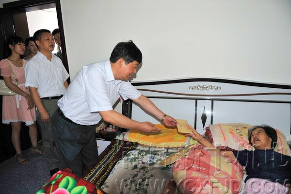 7月1日,在紀(jì)念建黨90周年之際,宜昌市新豐機(jī)電公司黨支部書記、董事長(zhǎng)張本新同志,帶領(lǐng)公司15名黨員看望和慰問了陸城中筆社區(qū)五組77歲癱瘓?jiān)诖驳睦宵h員朱裕英同志。將全體黨員捐獻(xiàn)的慰問金2000元送到朱裕英同志手中。