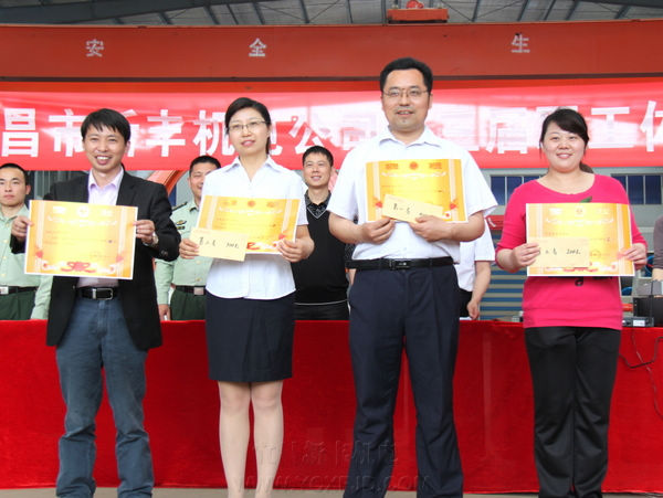 最后,張總為獲得宜都市勞動(dòng)競(jìng)賽“先進(jìn)個(gè)人”稱號(hào)的張雙明同志頒獎(jiǎng)。